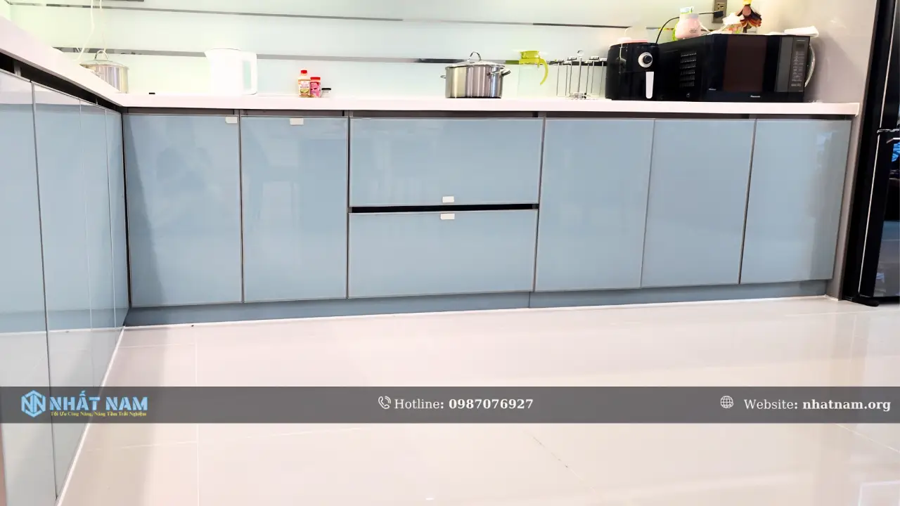 Quá trình triển khai được thực hiện bởi đội ngũ đã có kinh nghiệm thực tế, hiểu rõ từng chi tiết trong thi công tủ bếp. Nhờ đó, công trình đảm bảo độ chính xác, hạn chế sai sót và vận hành ổn định sau khi hoàn thiện.
