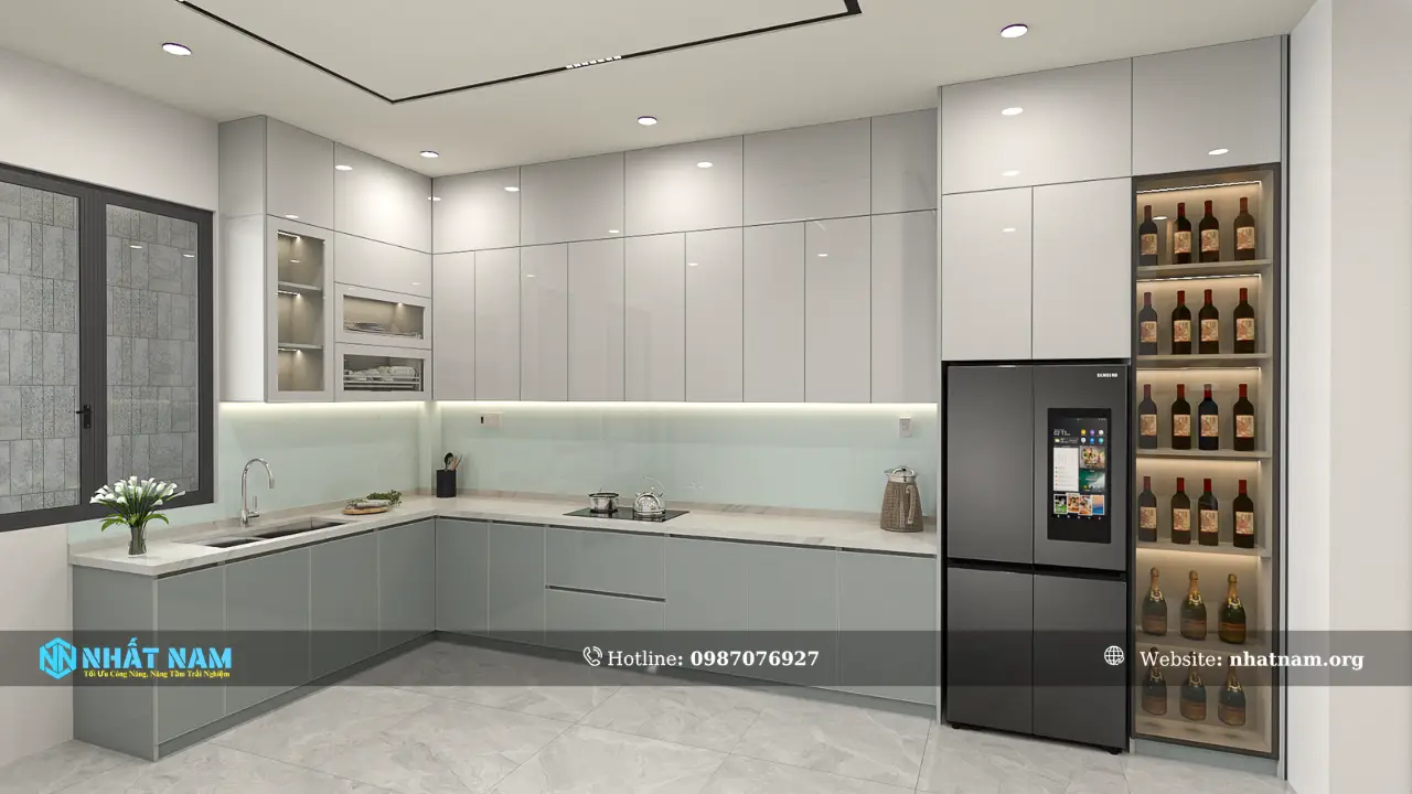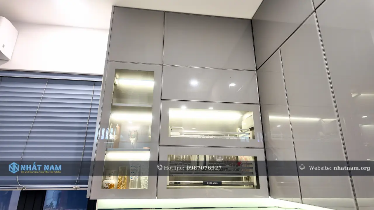 • Hệ tủ: Tủ trên, tủ dưới, tủ kịch trần, các khoang chức năng bố trí theo hiện trạng không gian