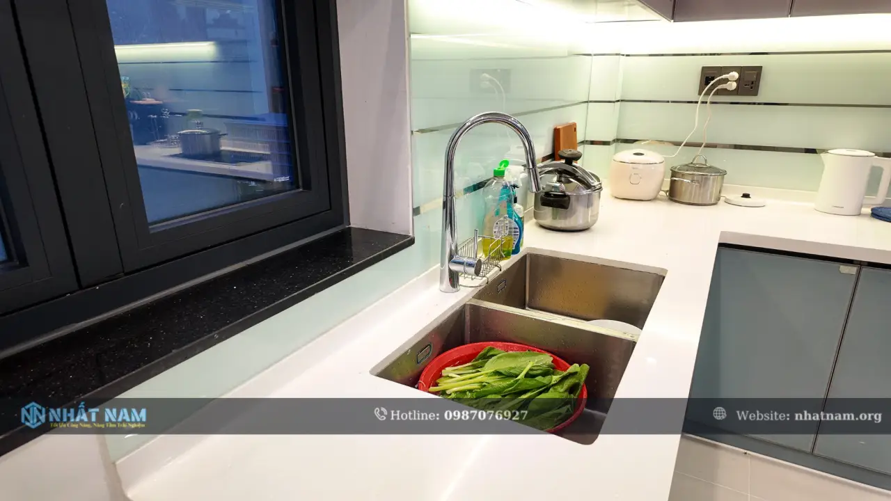 Nhất Nam sử dụng Inox 304 cho toàn bộ hệ tủ – vật liệu có độ bền cao, chống gỉ và chịu ẩm tốt, an toàn với sức khỏe người dùng. Nhờ đó, sản phẩm giữ được độ ổn định trong thời gian dài, hạn chế hư hỏng và phù hợp với môi trường bếp tại Việt Nam.