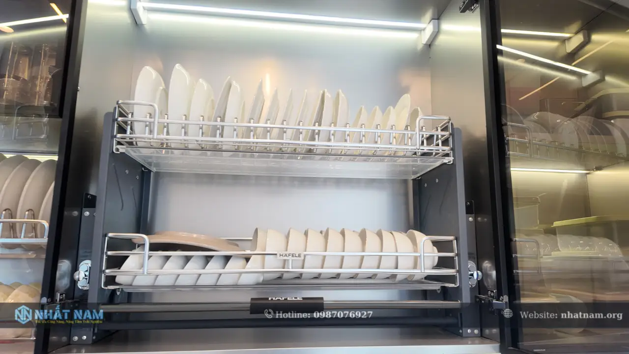 Nhất Nam lựa chọn Inox 304 làm nền tảng cho toàn bộ hệ tủ – vật liệu có độ bền cao, chống gỉ và phù hợp với môi trường bếp. Nhờ đó, sản phẩm không chỉ duy trì độ chắc chắn theo thời gian mà còn đảm bảo an toàn trong quá trình sử dụng. -