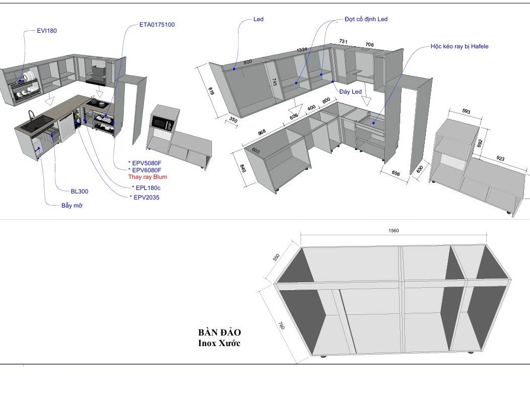 Link sản phẩm Tủ Bếp Inox Xước 3 Lớp Hệ Module