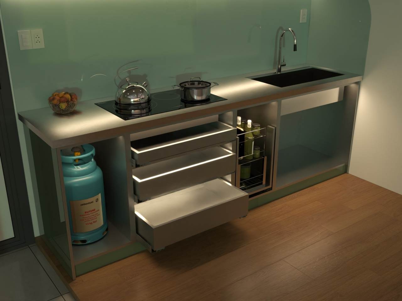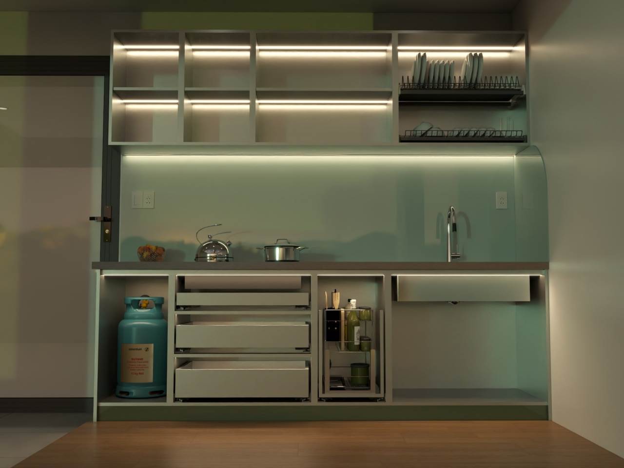Link sản phẩm Tủ bếp Inox caro 3 lớp hệ module