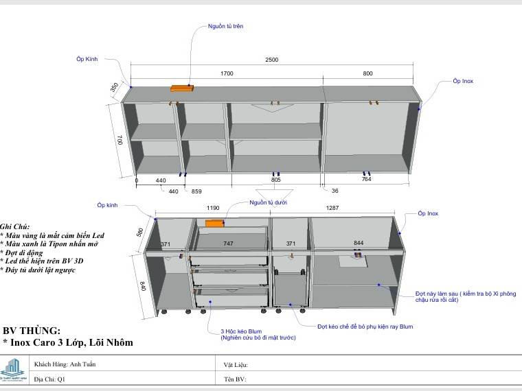 Công trình Anh Tuấn, TP. HCM – Tủ bếp Inox 304 Caro – Cánh Inox Caro