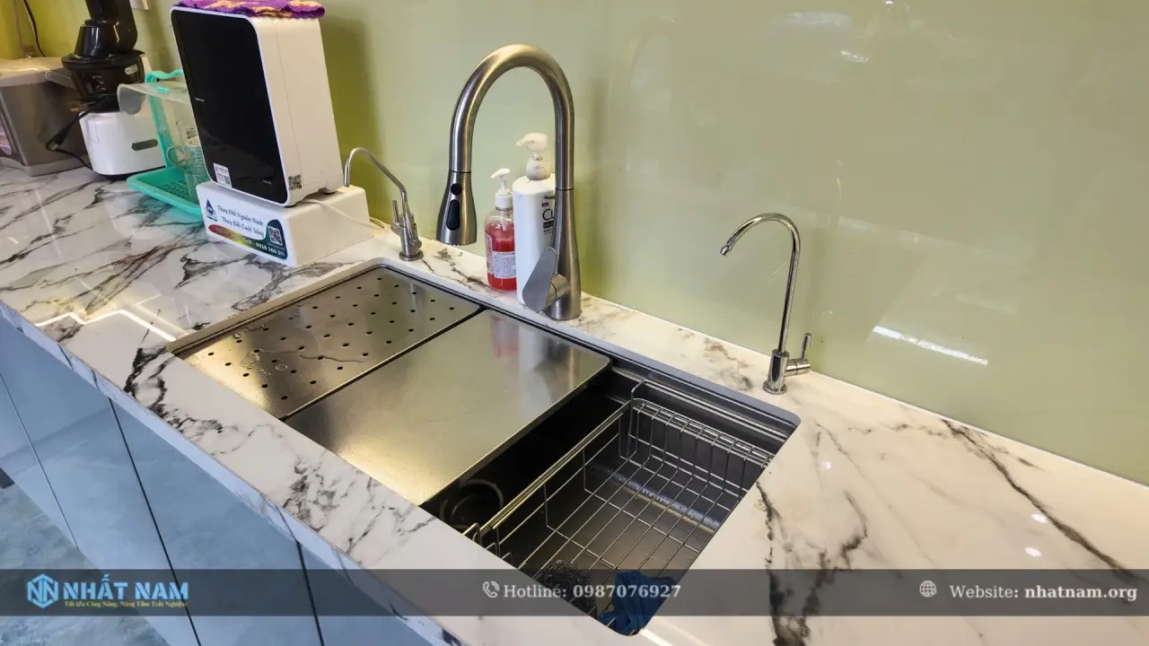 Công trình sau khi lắp đặt hoàn thiện, sẽ được đội ngũ kỹ thuật Nhất Nam tiến hành kiểm tra tỉ mỉ từng chi tiết trước khi bàn giao. Từ góc cạnh nhỏ, cho đến khả năng vận hành của ray trượt, độ khít của cánh tủ, bản lề cho đến độ phẳng , độ chắc chắn của bề mặt. Tất cả đều được rà soát kỹ lưỡng để đảm bảo đạt tiêu chuẩn chất lượng cao nhất.