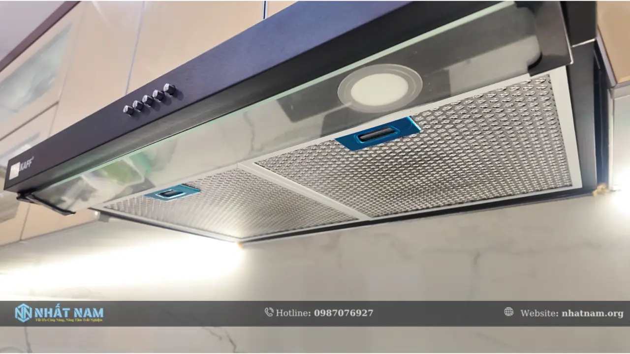 Phần cánh sử dụng Inox caro kết hợp kính màu cường lực 5mm, vừa đảm bảo độ chắc chắn, vừa tạo hiệu ứng sáng và hiện đại cho tổng thể không gian bếp.