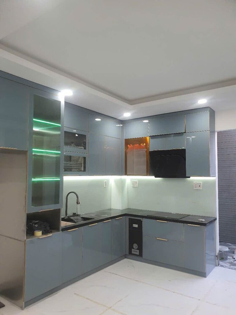 Công trình chị Hà, Dĩ An – Tủ bếp Inox 304 Sọc Hairline – Cánh kínhCông Trình Tủ Bếp Inox 304 Sọc Hairline