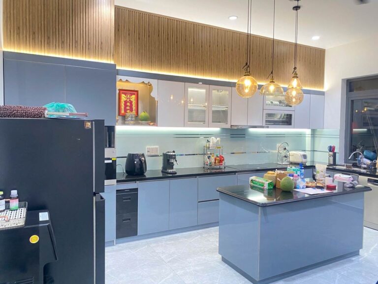Công trình Chị Thu, Q9 – Tủ bếp Inox 304 Sọc Hairline – Cánh KínhCông Trình Tủ Bếp Inox 304 Sọc Hairline