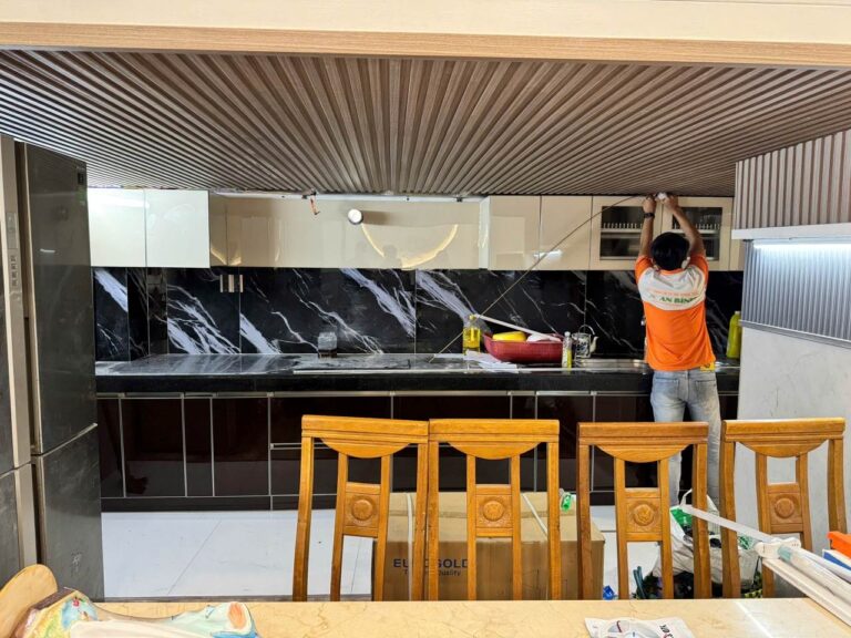 Công trình Anh Cường, Bến Cát – Tủ bếp Inox 304 Sọc Hairline – Cánh kínhCông Trình Tủ Bếp Inox 304 Sọc Hairline