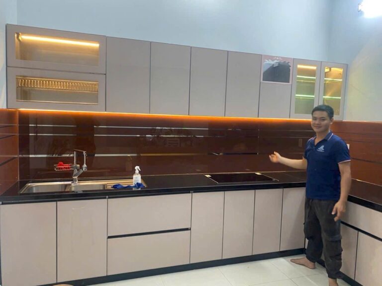 Công trình Chị Giang, Thuận An – Tủ bếp Inox 304 Sọc Hairline – Cánh Inox CaroCông Trình Tủ Bếp Inox 304 Sọc Hairline, Công Trình Tủ Bếp Inox 304 Vân Caro
