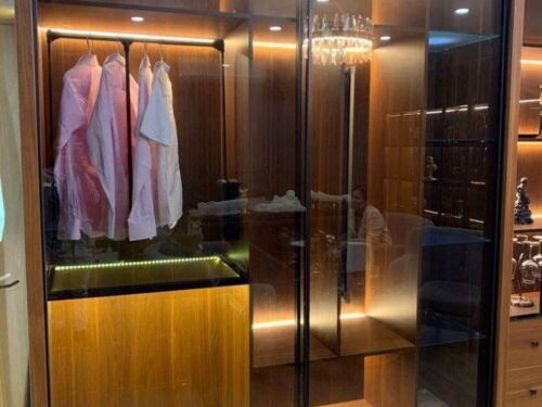 Mẫu tủ kính lùa 2 cánh thiết kế âm tường