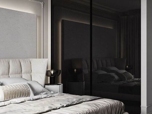 Tủ kính lùa 2 cánh màu đen tinh tế, phù hợp không gian tối giản