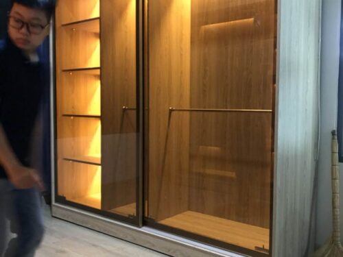 Tủ kính lùa 2 cánh với hệ ray trượt êm ái, dễ dàng sử dụng