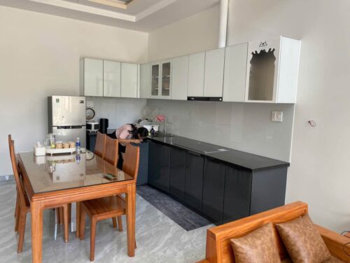 Với thiết kế tập trung, các khu vực chức năng như nấu nướng, rửa chén và lưu trữ được sắp xếp gần nhau, giúp bạn tiết kiệm thời gian và công sức trong quá trình nấu ăn.