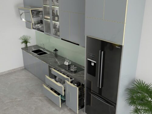 Tủ bếp chữ I là một loại thiết kế bếp phổ biến với cách bố trí các khu vực chức năng trên cùng một đường thẳng. Mẫu tủ này thường được sử dụng trong các không gian nhỏ, chẳng hạn như căn hộ chung cư, nhà phố, hoặc các gian bếp có diện tích hạn chế. Tuy đơn giản nhưng thiết kế tủ bếp chữ I vẫn đảm bảo tính thẩm mỹ và đầy đủ công năng, đáp ứng nhu cầu sinh hoạt của mọi gia đình.