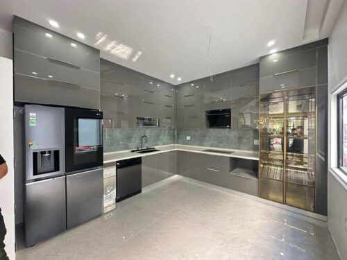 Tủ bếp nhôm kính chữ L