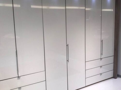 Thiết kế tủ quần áo gỗ ép phủ Acrylic màu trắng tinh tế
