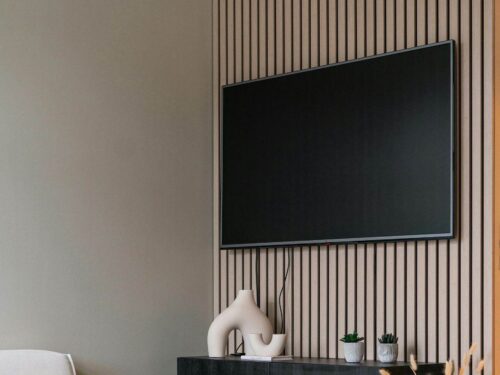 Chọn vách tivi có kích thước cân đối với diện tích phòng và tivi. Với tivi từ 55-65 inch, vách nên rộng từ 1,6m trở lên. Chiều cao vách nên đặt tivi ngang tầm mắt (85-100cm từ sàn đến trung tâm màn hình) để đảm bảo trải nghiệm xem thoải mái.
