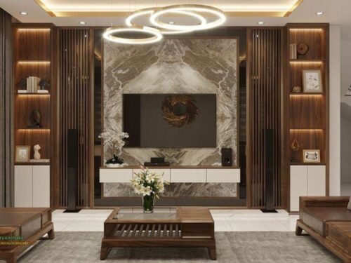 Với sự đa dạng trong màu sắc và mẫu mã, vách tivi vân đá dễ dàng kết hợp với các món đồ nội thất khác như bàn trà, kệ tivi, ghế sofa, tạo ra một không gian hài hòa, đồng nhất và thẩm mỹ.