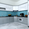 Tủ trên màu trắng kết hợp tủ dưới màu xanh
